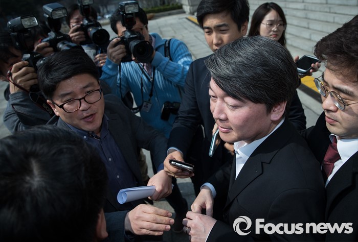 (서울=포커스뉴스) 안철수 국민의당 상임공동대표가 23일 오전 국회 본청에서 열린 비공개 최고위원회의에 참석 후 공천에서 배제된 당원과 예비후보들이 회의장 밖에서 항의하자 몰래 국회를 빠져나가고 있다.