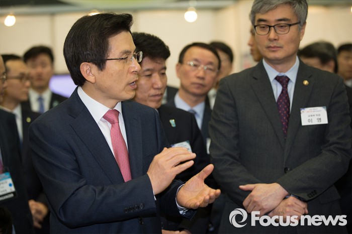 (고양=포커스뉴스) 23일 오전 경기도 고양시 킨텍스 제2전시장에서 열린 2016 대한민국 고졸인재 잡 콘서트(Job Concert)에서 황교안 국무총리가 참석해 방통대 부스 담당자에게 질문하고 있다.