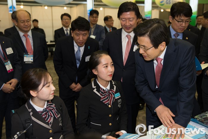 (고양=포커스뉴스) 23일 오전 경기도 고양시 킨텍스 제2전시장에서 열린 2016 대한민국 고졸인재 잡 콘서트(Job Concert)에서 황교안 국무총리가 참석해 상담받고 있는 고졸인재 학생들과 대화를 나누고 있다.