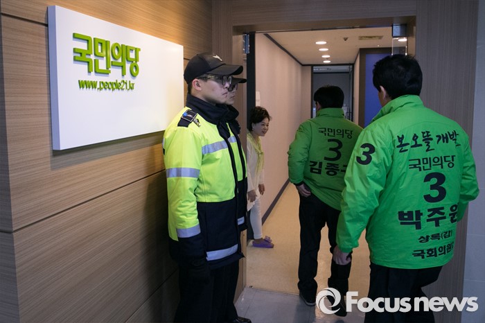 | △ 경찰 병력 대기 중인 국민의당 사무실 입구 |