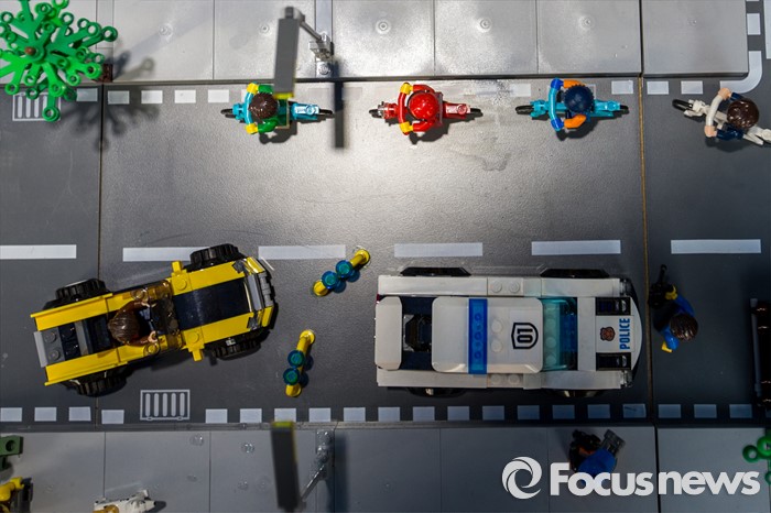 (서울=포커스뉴스) 23일 오전 서울 용산구 아이파크몰 광장에서 '레고 시티 트레일러'가 공개 되고 있다.