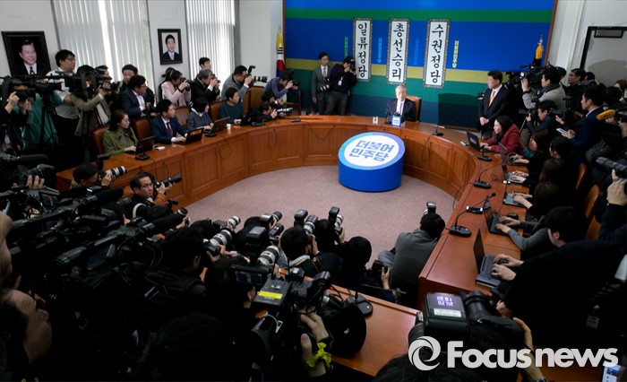 (서울=포커스뉴스) 김종인 더불어민주당 비대위 대표가 23일 오후 서울 여의도 국회에서 당 잔류와 관련 기자간담회를 하고 있다.