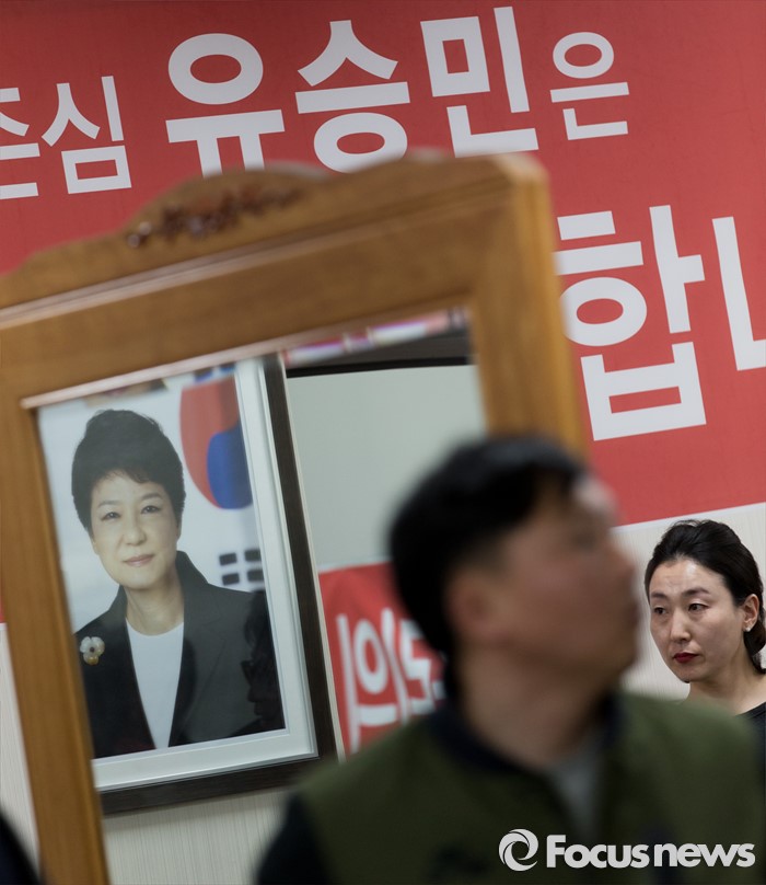 (대구=포커스뉴스) 20대 총선 후보자 등록일 하루 전인 23일 오후 대구 동구 유승민 의원 선거사무소에 박근혜 대통령의 사진이 걸려있다.