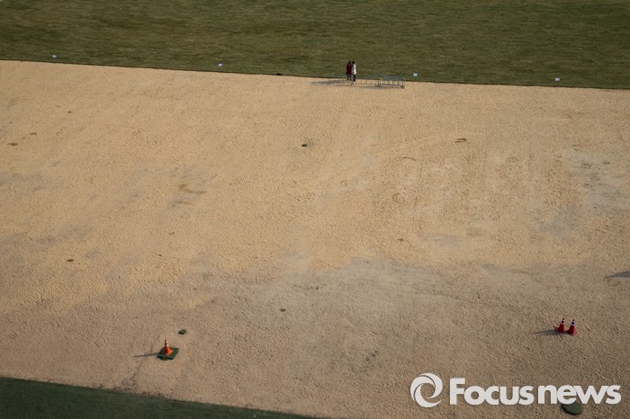 (서울=포커스뉴스) 서울시가 겨울 동안 스케이트장으로 사용됐던 서울광장에 23일 오후 잔디를 새롭게 단장하고 있다.