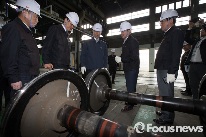 (대전=포커스뉴스) 최정호 국토교통부 2차관이 23일 오후 대전 대덕구철도차량정비단을 방문해 화차정비소를 점검하고 있다.