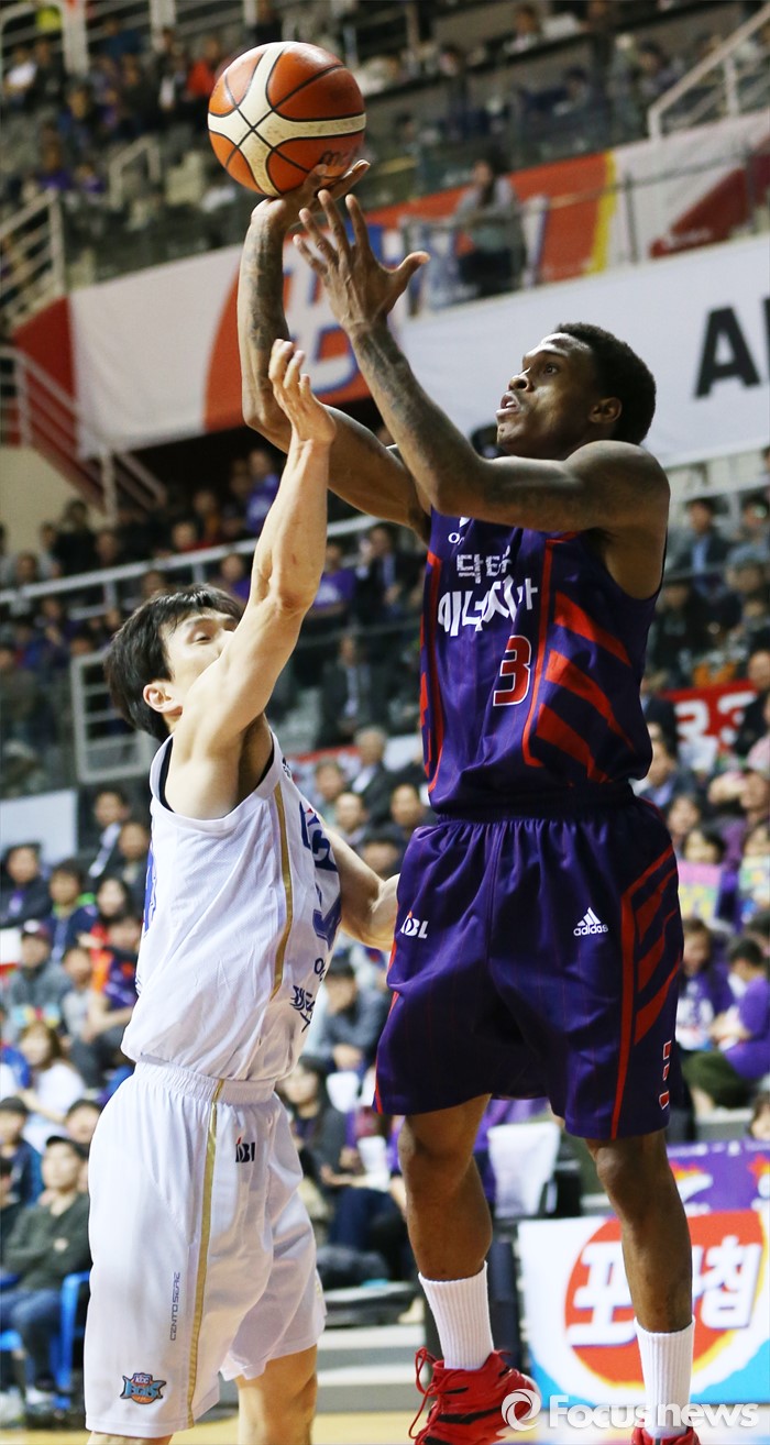 (고양=포커스뉴스) 23일 고양체육관에서 열린 2015-2016 프로농구 챔피언결정전 3차전 오리온-KCC경기에서 오리온 조 잭슨이 KCC 김효범의 수비에 앞서 점프슛을 쏘고 있다.
