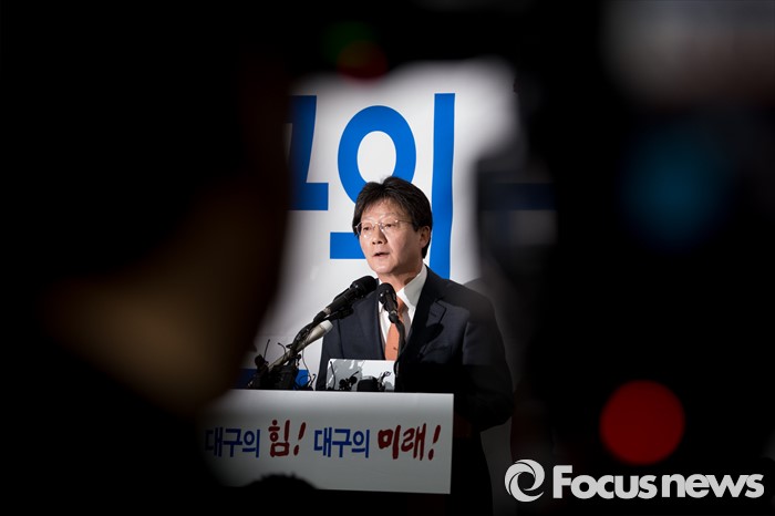 (대구=포커스뉴스) 유승민 의원이 23일 오후 대구 동구 용계동 사무소에서 새누리당 탈당 및 무소속 출마 기자회견을 하고 있다.
