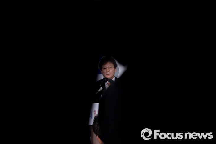 (대구=포커스뉴스) 유승민 의원이 23일 오후 대구 동구 용계동 사무소에서 새누리당 탈당 및 무소속 출마 기자회견을 하고 있다.