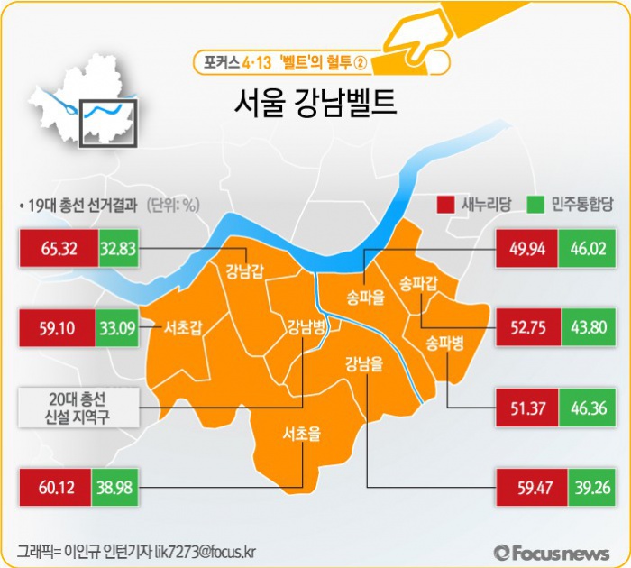 (서울=포커스뉴스) 4·13 총선이 20여일 남은 시점에서 '강남벨트'에 이목이 집중된다.