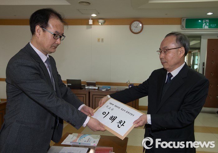 (세종=포커스뉴스) 제20대 국회의원 선거 후보자 등록 첫날인 24일 오전 세종시 조치원읍 세종시선거관리위원회에서 무소속 이해찬 후보의 대리인이 등록 신청서를 제출하고 있다.