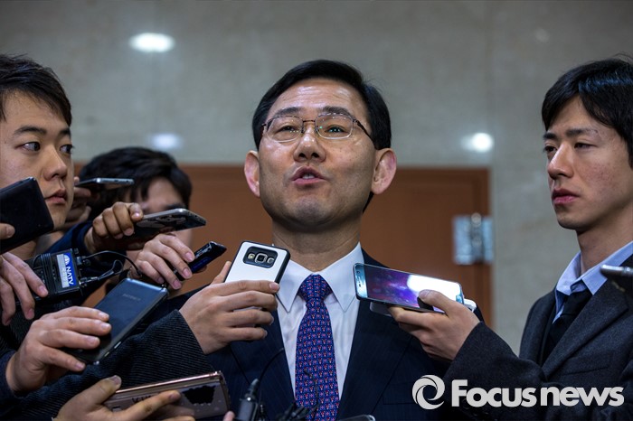 (서울=포커스뉴스) 20대 총선에서 새누리당 공천을 받지 못한 주호영(대구 수성을) 의원이 24일 오전 서울 영등포구 국회 에서 무소속 출마 발표를 마친 뒤 취재진 질문에 답하고 있다.
