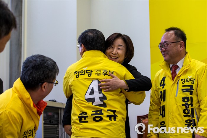 (서울=포커스뉴스) 심상정 정의당 상임대표가 24일 오전 서울 영등포구 국회에서 열린 '20대 국회의원총선거 공천장 수여식'에 참석해 공천을 받은 후보들과 인사 하고 있다.