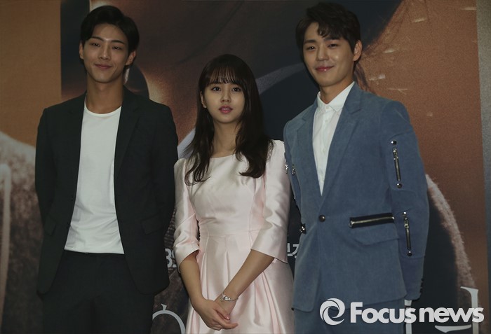 (서울=포커스뉴스) 24일 오전 서울 영등포구 63컨벤션센터에서 열린 KBS 2TV 청춘 3부작 드라마 '페이지터너' 제작발표회에 참석한 배우 지수(왼쪽부터), 김소현, 신재하가 포토타임을 갖고 있다.