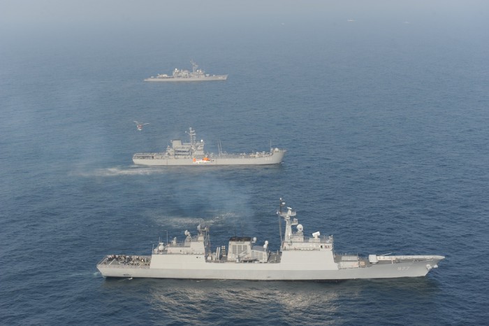 한편 일본 자위대는 지난 2010년 4월 천안함 사건으로 희생된 장병들의 영결식에 해상막료장을 참석시킨 바 있다.부산 인근 해안에서 합동 훈련을 하고 있는 한국 해군과 일본 해상자위대. <사진제공=해군>