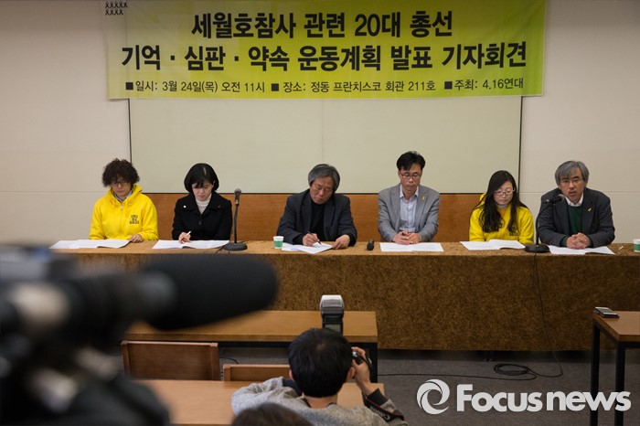 (서울=포커스뉴스) 24일 오전 서울 중구 프란치스코 회관에서 이태호 4.16연대 삼임운영위원이 세월호참사 관련 20대 총선 기억·심판·약속 운동계획 발표를 하고 있다.