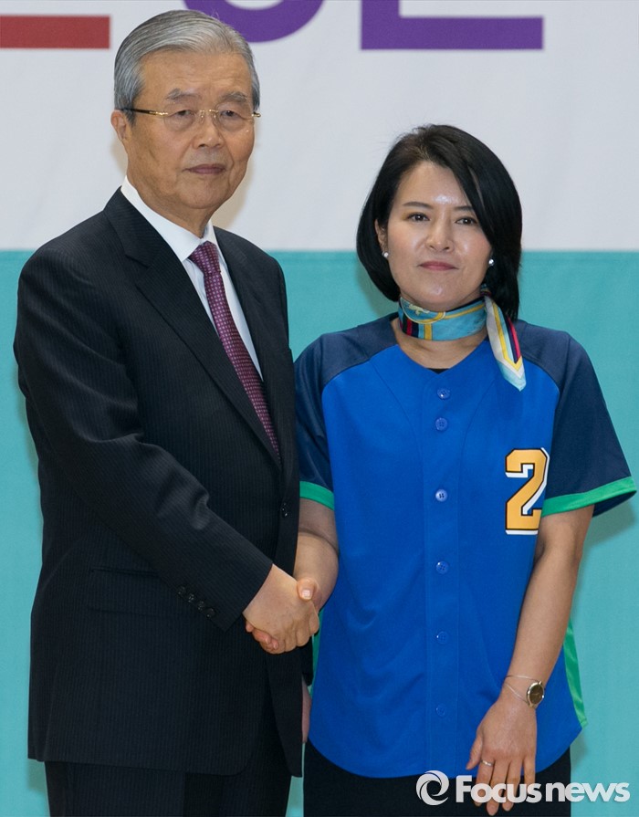 (서울=포커스뉴스) 김종인(왼쪽) 더불어민주당 비대위 대표가 24일 오전 서울 여의도 국회에서 공천장 수여식에 참석해 허윤정 비례대표 후보와 기념촬영을 하고 있다.