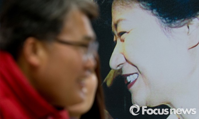 (대구=포커스뉴스) 24일 오후 대구 동구 방촌동의 이재만(대구 동구을) 후보 선거사무소에서 지지자들과 이야기를 나누는 이 후보 뒤로 박근혜 대통령의 사진이 보이고 있다.