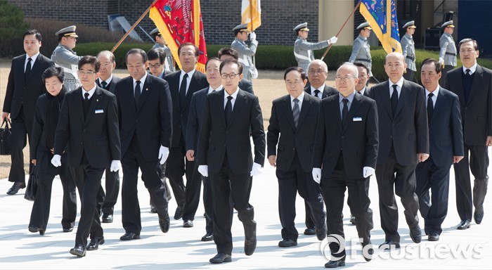 (대전=포커스뉴스) 이명박 전 대통령이 제1회 서해수호의날을 하루 앞둔 24일 오전 대전 유성구 국립대전현충원을 참배하기 위해 입장하고 있다.