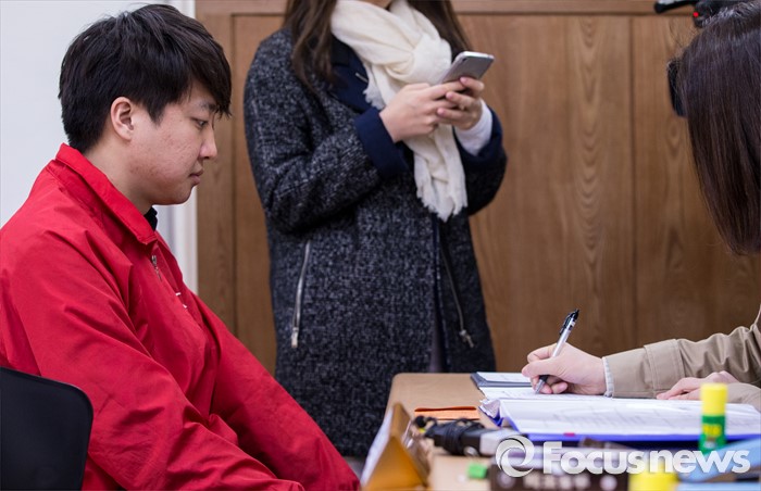 (서울=포커스뉴스) 4·13 총선 후보자 등록 첫 날인 24일 오후 서울 노원구선거관리위원회를 찾은 이준석 새누리당 노원병 후보가 후보자 등록을 하고 있다.