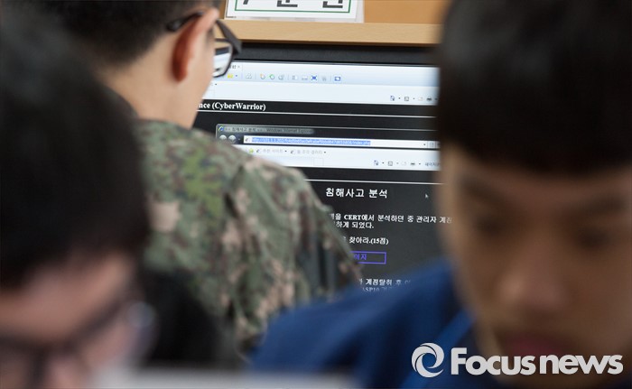(대전=포커스뉴스) 24일 오후 대전 유성구 자운대 국군정보통신학교에서 열린 2016년 육군 해킹 방어대회에 참가한 장병과 학생들이 문제풀이를 하고 있다.