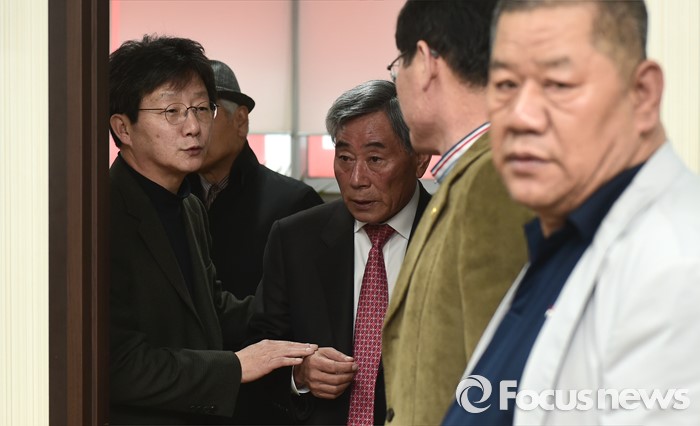 (대구=포커스뉴스) 전날 새누리당 탈당과 함께 무소속 출마를 선언한 대구 동구을 유승민 의원이 24일 오후 대구 동구의 사무소에서 지지자들과 만나 이야기를 나누고 있다.