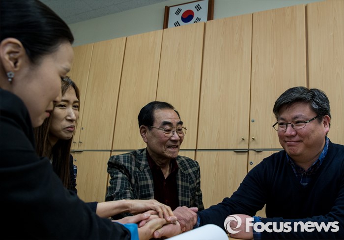(서울=포커스뉴스) 지난 1983년 7살의 나이에 스웨덴으로 입양을 갔던 김세진(Daniel sei jin Magnusson·41) 씨가 경찰의 도움으로 가족을 찾았다. 24일 오전 서울 남대문경찰서 민원실에서 김 씨가 생부 김용환(75)씨와 큰누나 김윤정(45)씨, 작은누나 김연정(43)씨를 만나고 있다. 김 씨는 한국의 가족을 찾기 위해 지난 3월 16일남대문경찰서 민원실을 찾았고, 경찰은 김 씨가 가지고 온 재적등본, 친권포기각서 등의 자료를 바탕으로 친부와 누나들을 찾았다.