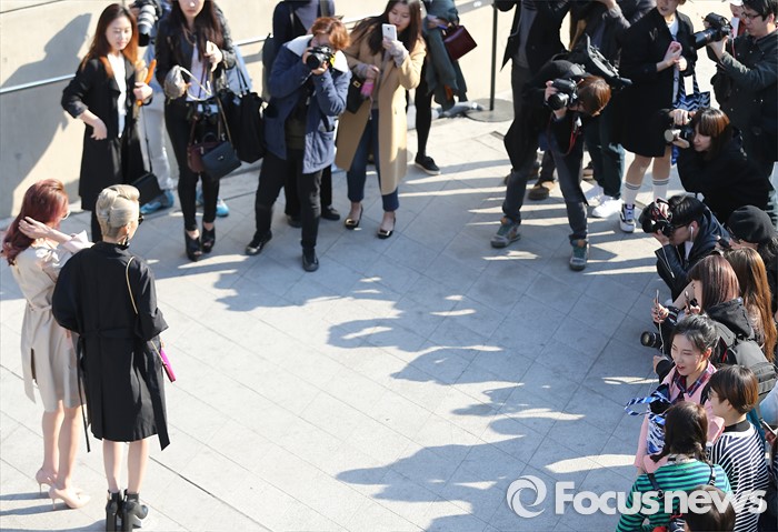 (서울=포커스뉴스) 24일 오후 서울 중구 동대문 디자인 플라자에서 열린 '2016 F/W 헤라 서울패션위크에 참여한 취재진들이 모델들을 카메라에 담고 있다.