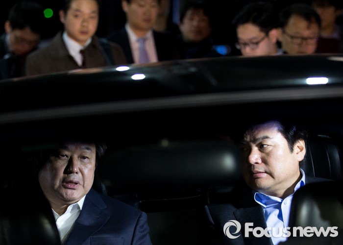 (부산=포커스뉴스) 당 공천관리위원회의 공천안에 반발해 최고위원회의 소집을 거부한 김무성(왼쪽) 새누리당 대표와 설득에 나선 원유철 원내대표가 24일 오후 부산 영도구 김 대표 사무실에서 만난 뒤 자갈치시장으로 향하고 있다.