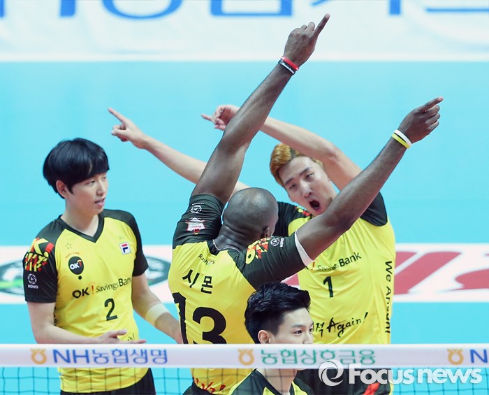 | △ 시몬과 송명근의 세리모니 |
