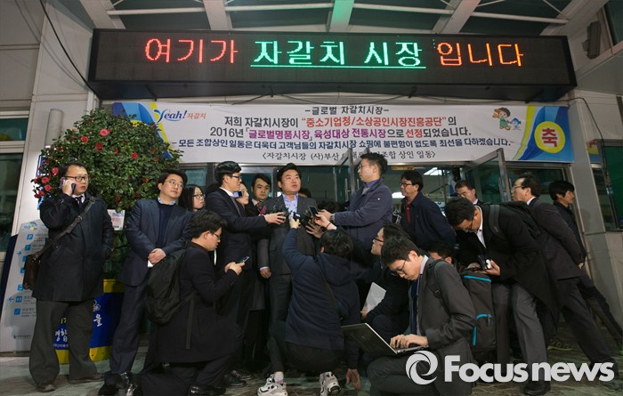 (부산=포커스뉴스) 24일 오후 부산 중구 자갈치시장에서 원유철 새누리당 원내대표가 당 공천관리위원회의 공천안에 반발해 최고위원회의 소집을 거부한 김무성 대표를 찾아 저녁식사후 취재진 질문에 답하고 있다.