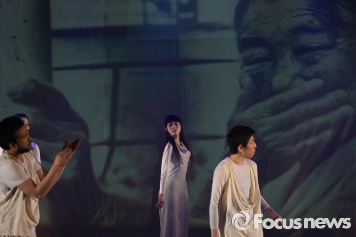 (서울=포커스뉴스) 24일 오후 서울 왕십릭역 광장 특설무대에 설치된 텐트극장에서 한·일 연극 공동 프로젝트 일환으로 열린 '백년, 바람의 동료들' 연극에서 일본극단 신주쿠양산박 단원들이 멋진 무대를 선보이고 있다.