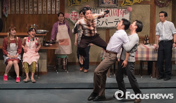 (서울=포커스뉴스) 24일 오후 서울 왕십릭역 광장 특설무대에 설치된 텐트극장에서 한·일 연극 공동 프로젝트 일환으로 열린 '백년, 바람의 동료들' 연극에서 일본극단 신주쿠양산박 단원들이 멋진 무대를 선보이고 있다.