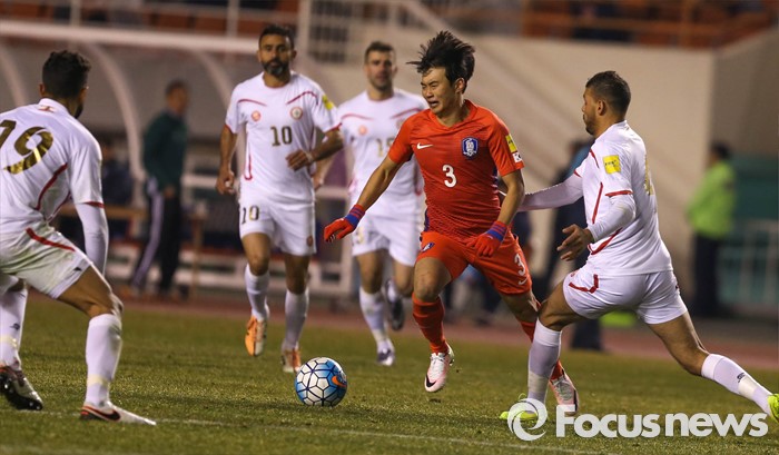 (안산=포커스뉴스) 24일 오후 경기도 안산 와스타디움에서 열린 2018 러시아 월드컵 아시아 2차 예선 7차전 대한민국 대 레바논 경기에서 김진수 선수가 레바논 수비를 뚫고 드리블하고 있다.