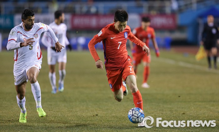 (안산=포커스뉴스) 24일 오후 경기도 안산 와스타디움에서 열린 2018 러시아 월드컵 아시아 2차 예선 7차전 대한민국 대 레바논 경기에서 이재성 선수가 드리블을 하며 전력질주 하고 있다.