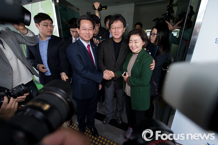 (대구=포커스뉴스) 25일 오전 대구 동구선거관리위원회에서 류성걸(대구 동갑), 유승민(대구 동을), 권은희(대구 북갑) 의원이 후보자 등록에 앞서 기념촬영을 하고 있다.