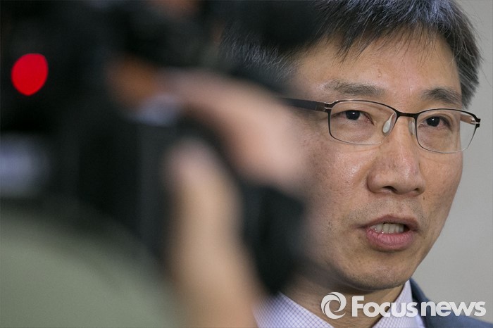 (서울=포커스뉴스) 이상규 전 통합진보당 의원이 25일 오전 서울 여의도 국회 정론관에서 기자회견을 마친 뒤, 기자들의 질문에 답변하고 있다. 지난 2014년 12월 헌법재판소의 통진당 해산결정으로 국회의원직을 박탈당한 이 전 의원은 민중연합당에 입당해, 이번 20대 총선에서 서울 관악을에 출마한다고 밝혔다.