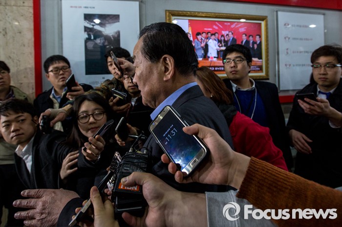 (서울=포커스뉴스) 이른바 진박 후보 공천장에 도장 못찍는다며 김무성 새누리당 대표의 '옥새투쟁'이 이어지고 있는 25일 오전 서울 영등포구 새누리당사 앞에서 서청원 새누리당 최고위원이 회의에 참석하기 위해 이동 하고 있다.