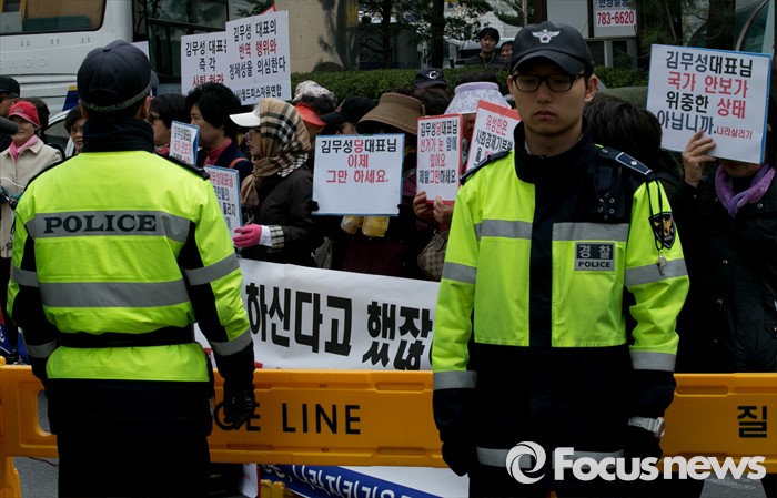 | △ 당사 앞 김무성 반대 집회하는 시민단체 |