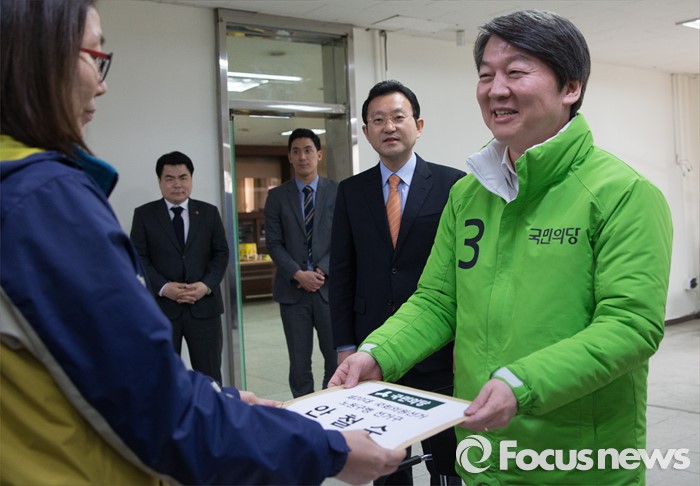 (서울=포커스뉴스) 노원병을 지역구로 출마하는 안철수 국민의당 상임공동대표가 25일 오후 서울 노원구 공릉동 선거관리위원회에서 제20대 국회의원 선거 후보자 등록을 하고 있다.