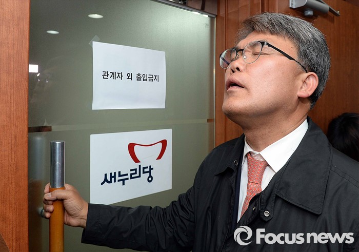 (서울=포커스뉴스) 이재만 새누리당 대구 동을 예비후보가 당 지도부의 무공천 결정 소식을 듣고 25일 오후 서울 여의도 당사를 찾아 김무성 대표 등 지도부와의 면담을 요청하며 기다리고 있다. 이날 새누리당 최고위는 정종섭(대구 동갑), 추경호(대구 달성), 이인선(대구 수성을) 후보의 공천을 확정했으며, 유영하(서울 송파을), 이재만(대구 동을), 유재길(서울 은평을) 후보는 공천 의결 보류를 확정했다.
