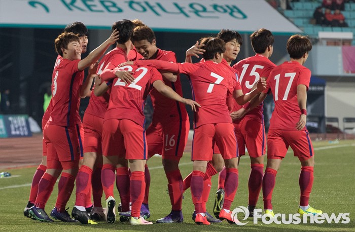 (이천=포커스뉴스) 25일 오후 경기 이천종합운동장에서 열린 KEB하나은행 초청 올림픽대표 대한민국과 알제리의 친선경기에서 전반전 한국 권창훈이 첫 득점을 성공하자 동료들과 기뻐하고 있다.