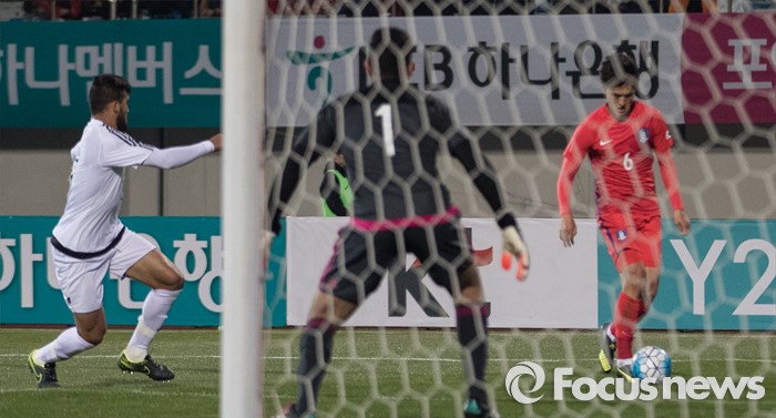 (이천=포커스뉴스) 25일 오후 경기 이천종합운동장에서 열린 KEB하나은행 초청 올림픽대표 대한민국과 알제리의 친선경기에서 전반전 한국 박용우가 슈팅 찬스를 노리고 있다.