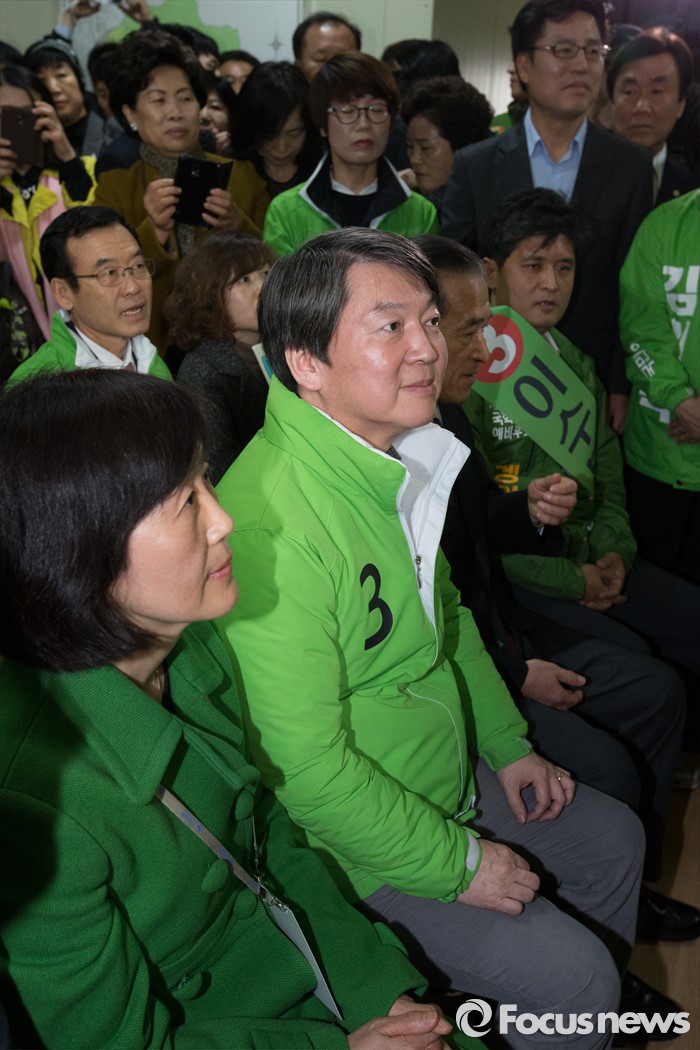 (서울=포커스뉴스) 안철수 국민의당 상임공동대표가 26일 오후 서울 노원구 노원병 선거사무소 개소식에서 자리에앉아 있다.