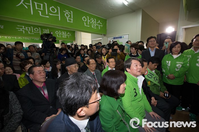 (서울=포커스뉴스) 안철수 국민의당 상임공동대표가 26일 오후 서울 노원구 노원병 선거사무소 개소식에서 자리에앉아 있다.