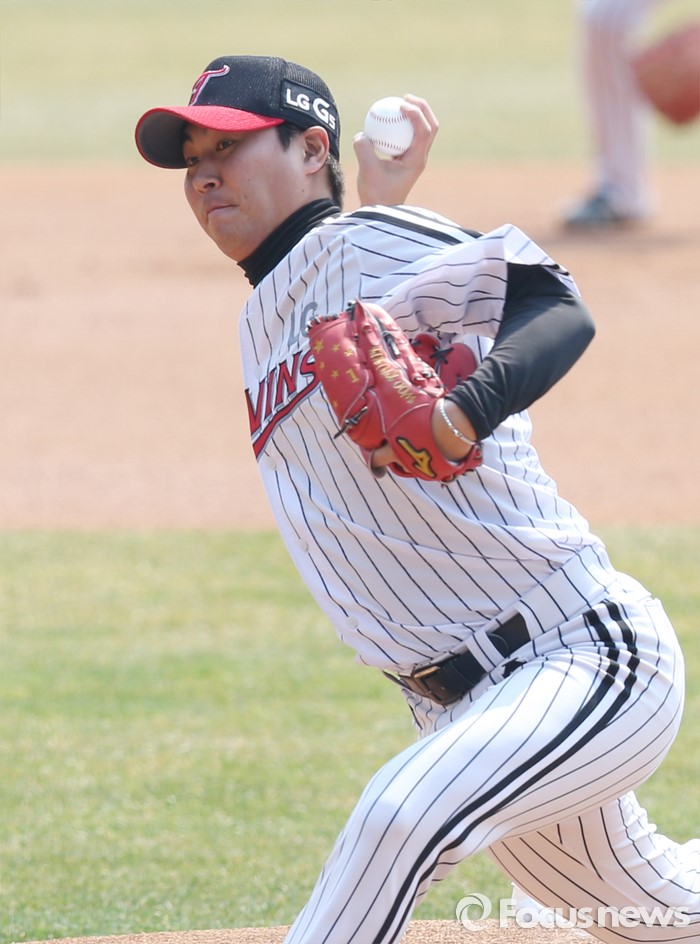 (서울=포커스뉴스) 27일 서울 잠실구장에서 열린 2016프로야구 시범경기 두산-LG 경기에서 1회 LG 선발투수 우규민이 투구하고 있다.