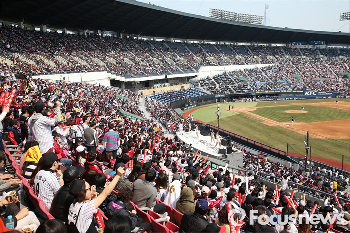 (서울=포커스뉴스) 3월의 마지막 휴일인 27일 프로야구 시범경기 두산-LG 전이 열린 서울 잠실구장을 찾은 많은 시민들이 화창한 봄 날씨를즐기고 있다.