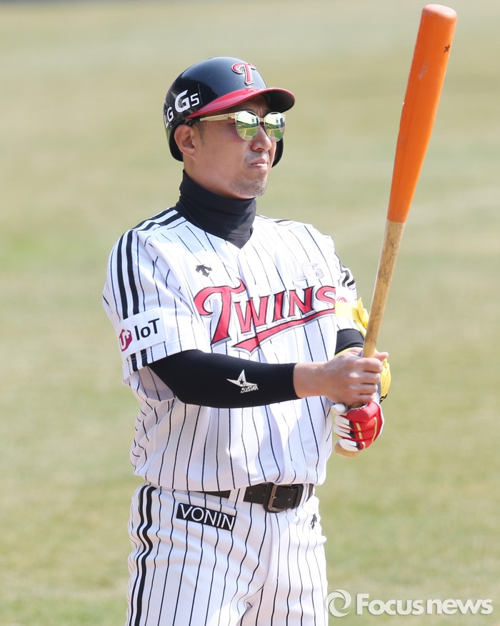 (서울=포커스뉴스) 27일 서울 잠실구장에서 열린 2016프로야구 시범경기 두산-LG 경기에서 LG 정성훈이 타석에서 배트를 고쳐 쥐고 있다.