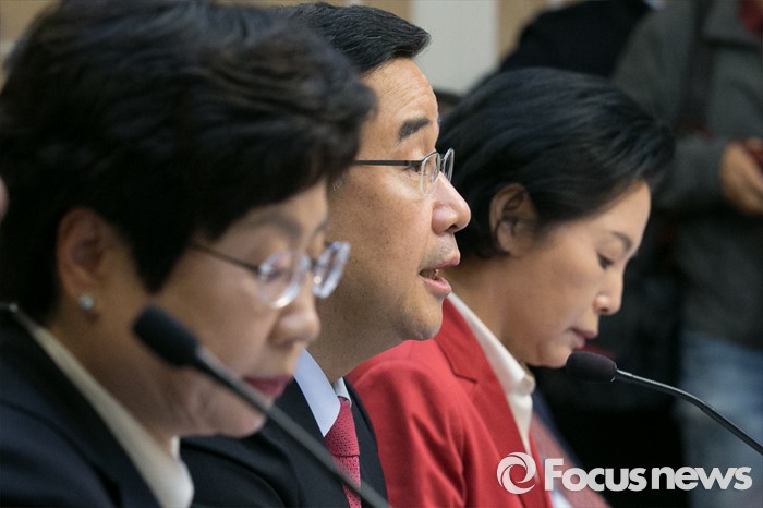 (서울=포커스뉴스) 김정훈(가운데) 새누리당 정책위의장이 28일 오전 서울 여의도 국회에서 열린 누리과정 등 교육현안 관련 당정협의에 참석해 모두발언하고 있다.