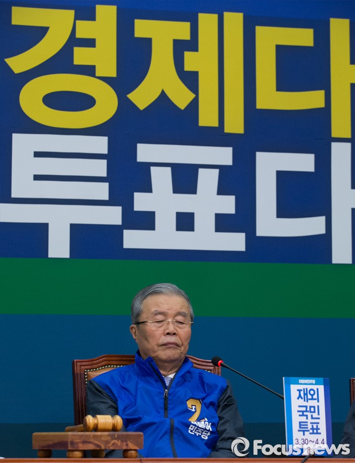 (서울=포커스뉴스) 김종인 더불어민주당 비대위 대표 겸 선대위원장이 27일 오전 서울 여의도 국회에서 열린 중앙선거대책위원장단회의에 참석해 생각에 잠겨 있다.