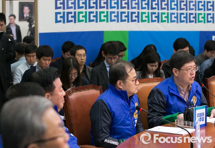 (서울=포커스뉴스) 김홍걸 더불어민주당 선대위 부위원장이 27일 오전 서울 여의도 국회에서 열린 중앙선거대책위원장단회의에 참석해 발언하고 있다.